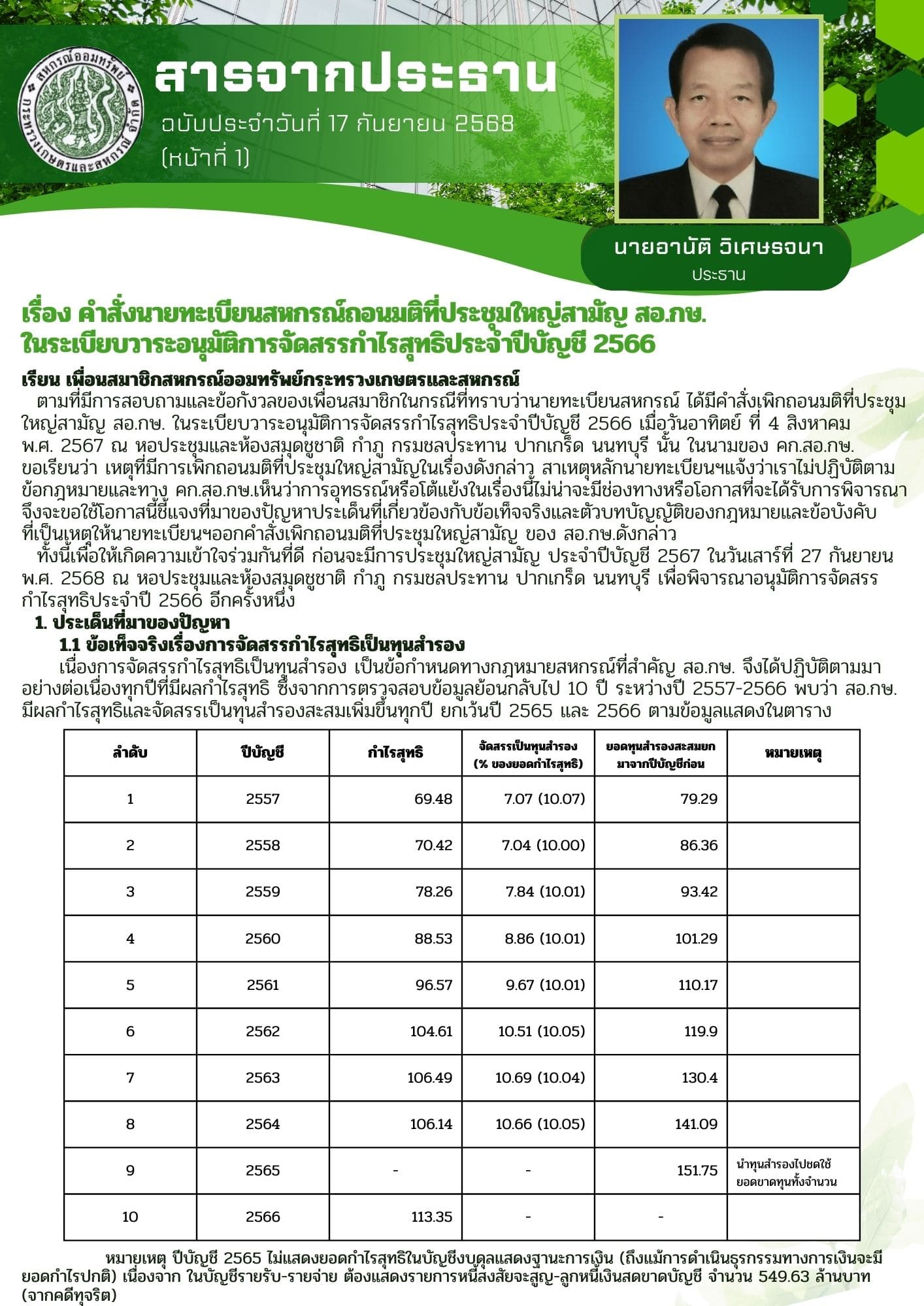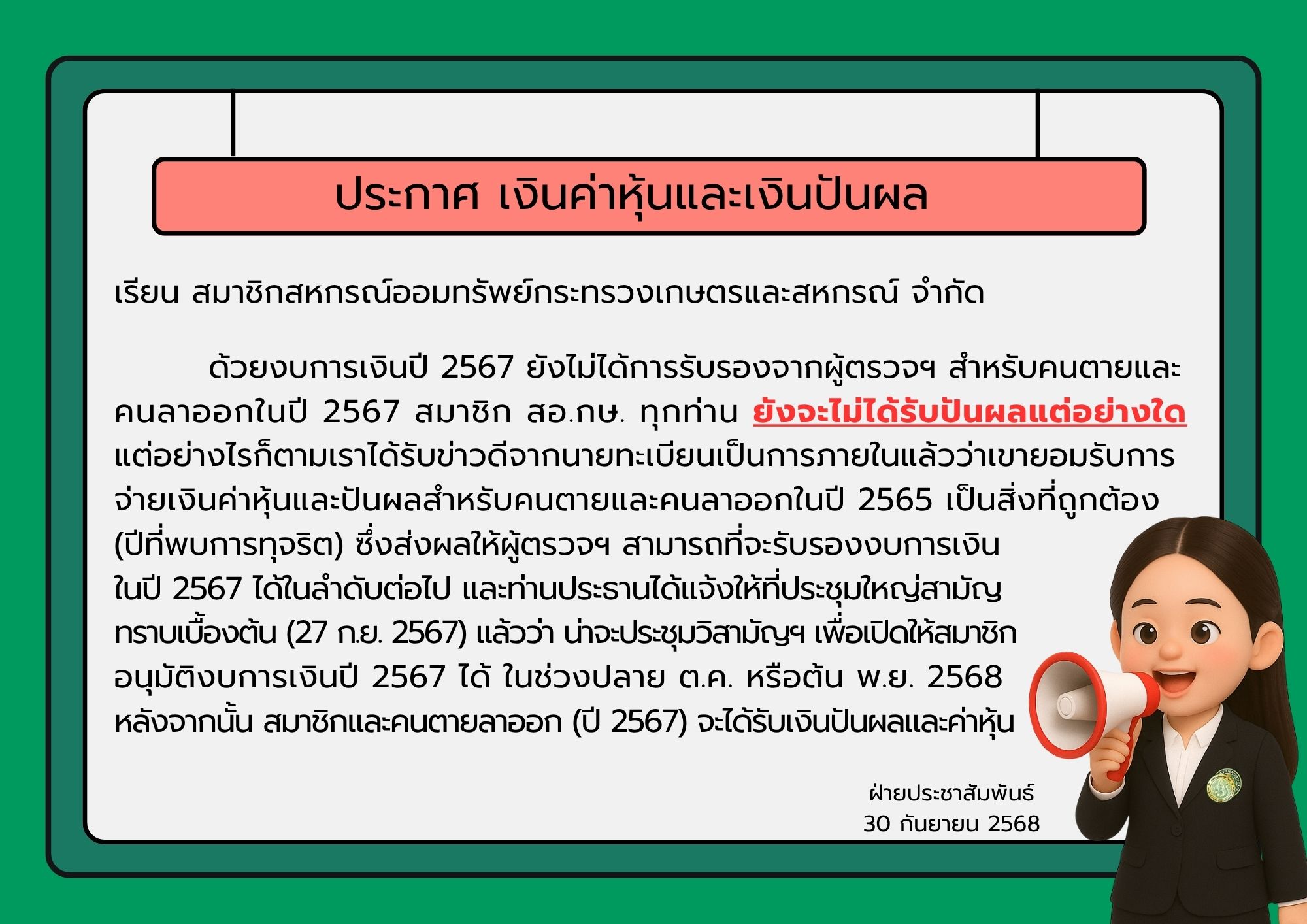 สหกรณ์ฯ ขอประชาสัมพันธ์เหตุผลและความจำเป็นที่ต้องเรียกคืนเงินปันผล ปี 2566