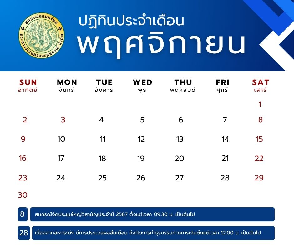 ประกาศวันหยุดทำการสหกรณ์ฯ เดือนตุลาคม 2568
