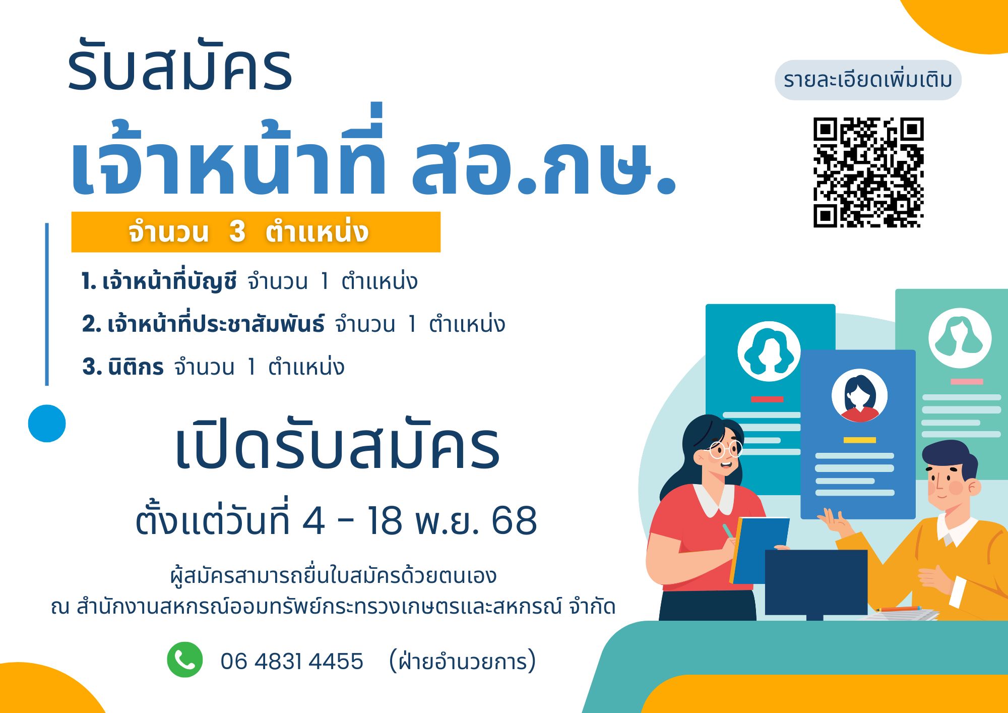 ประกาศ สอ.กษ. เรื่อง การสรรหาบุคลเพื่อบรรจุและแต่งตั้งเป็นเจ้าหน้าที่สหกรณ์