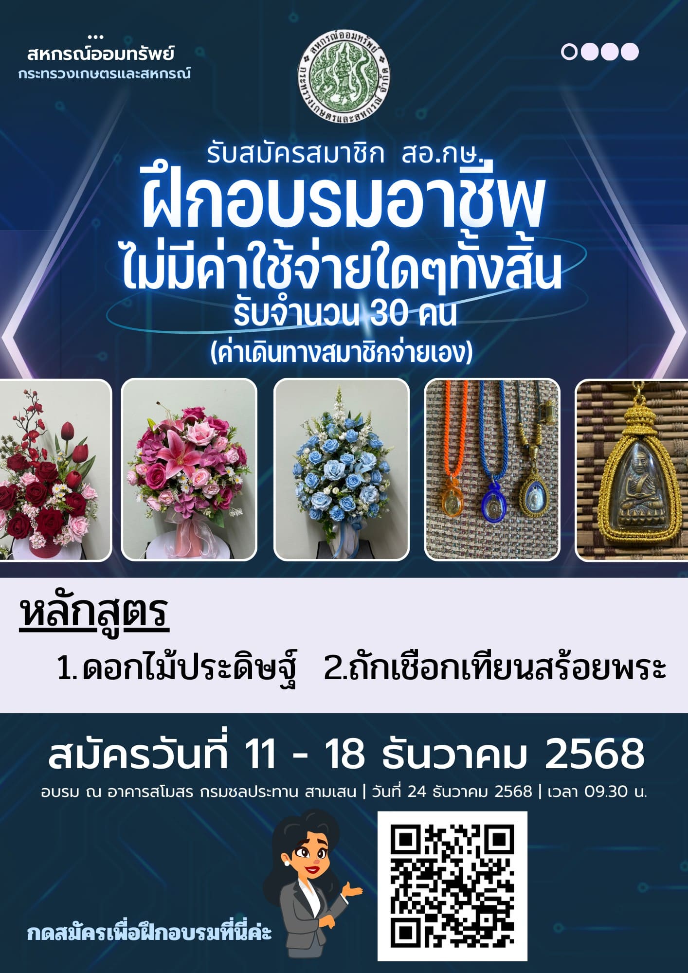 สหกรณ์ฯ เปิดรับสมัครเข้าร่วมโครงการฝึกอบรมอาชีพ โดยไม่มีค่าใช้จ่ายในการฝึกอบรม