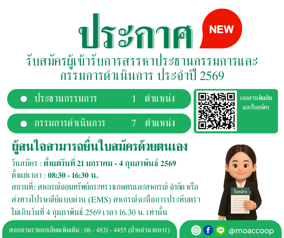 ประกาศ สอ.กษ. เรื่อง การสรรหาบุคลเพื่อบรรจุและแต่งตั้งเป็นเจ้าหน้าที่สหกรณ์