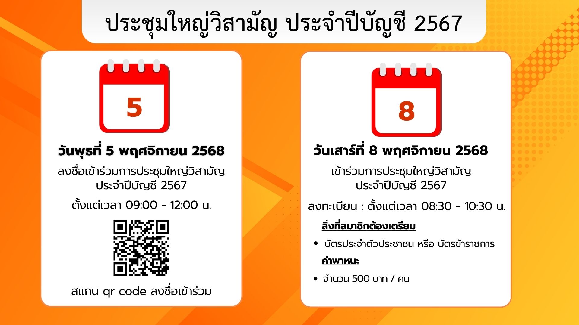 ประกาศ สอ.กษ. เรื่อง ขอเชิญเข้าร่วมประชุมใหญ่วิสามัญประจำปีบัญชี 2567