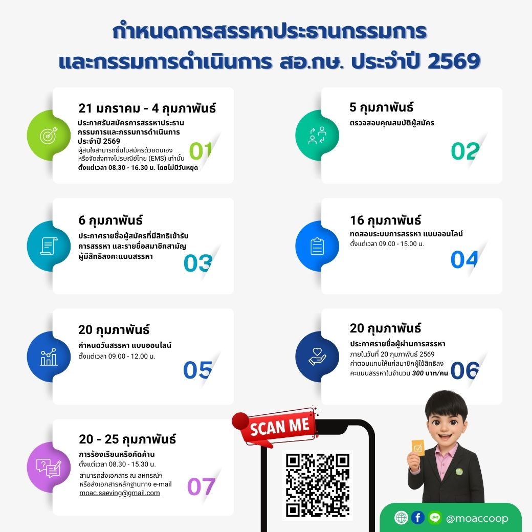 กำหนดการสรรหาประธานกรรมการและกรรมการดำเนินการ สอ.กษ. ประจำปี 2569