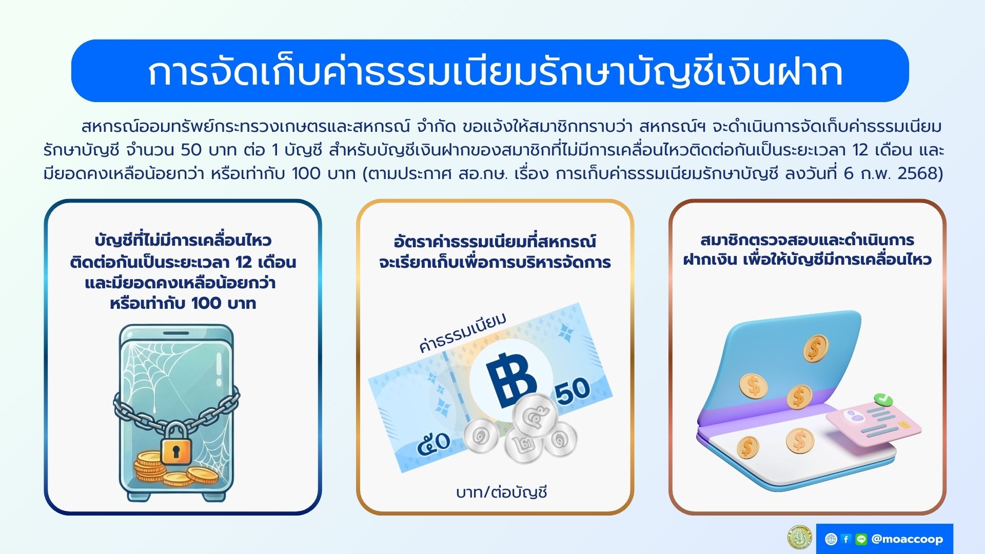 ประกาศ สอ.กษ. เรื่อง การจัดเก็บค่าธรรมเนียมรักษาบัญชีเงินฝาก