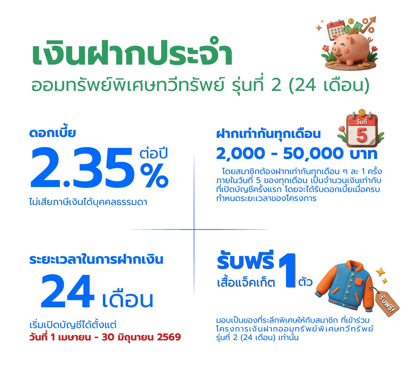 ประกาศ สอ.กษ. เรื่อง เงินฝากออมทรัพย์พิเศษทวีทรัพย์ รุ่นที่ 2 (24 เดือน)