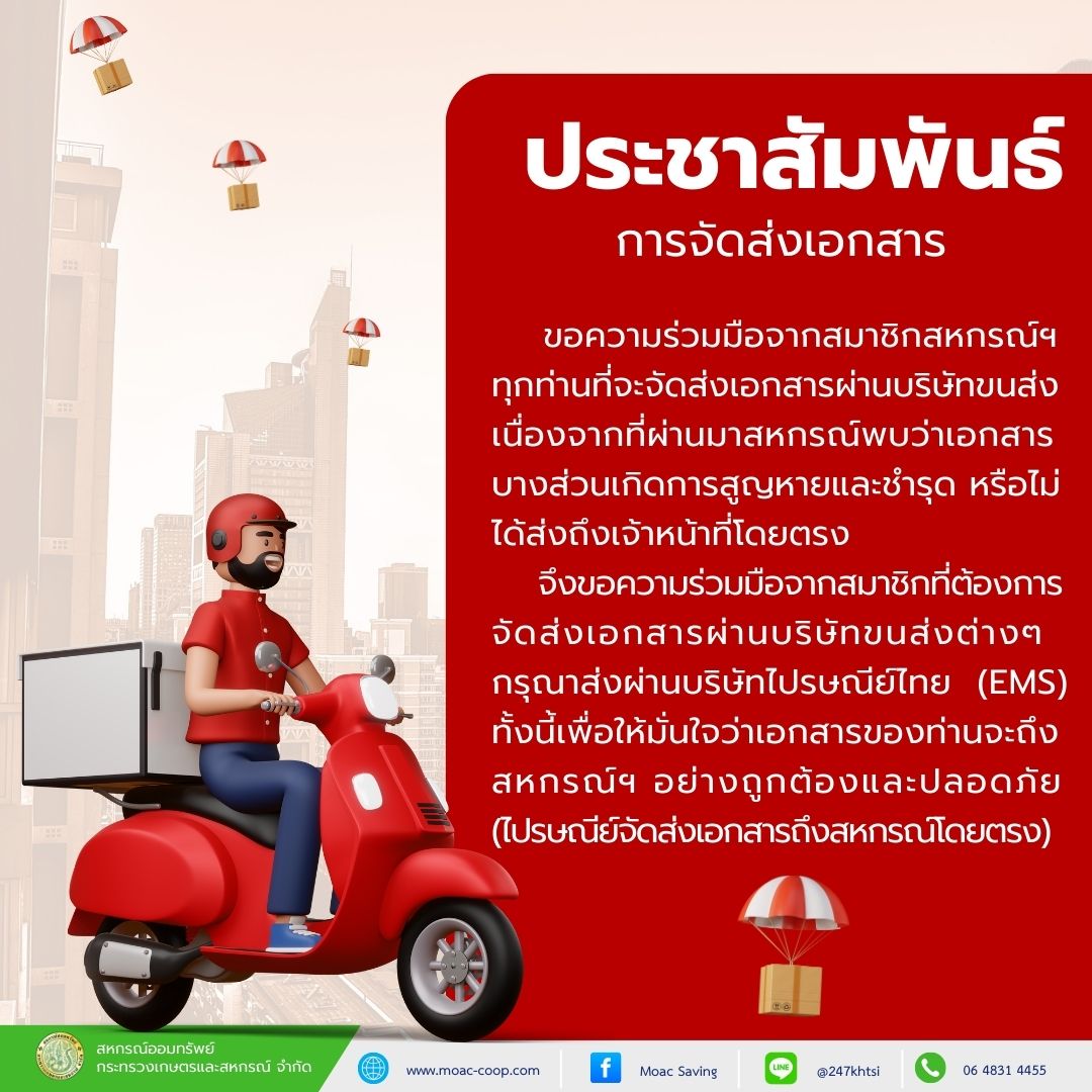 ประชาสัมพันธ์ การจัดส่งเอกสารมายังสหกรณ์ฯ