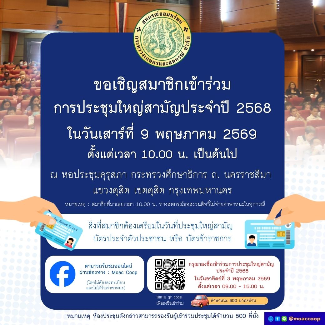 ขอเชิญชวนสมัครสมาชิกสหกรณ์ ตั้งแต่วันที่ 1 เม.ย. ถึง วันที่ 30 มิ.ย. 2569